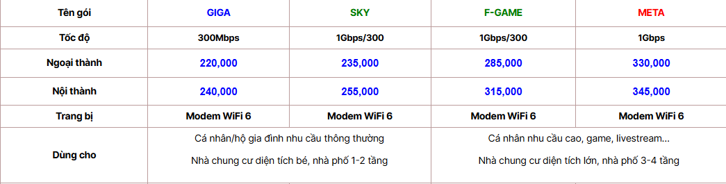 ✅ Gói cước linh hoạt, giá chỉ từ 190.000đ/tháng