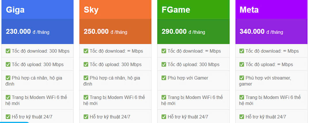 1. Bảng giá lắp mạng internet FPT Quận 1 cho gia đình